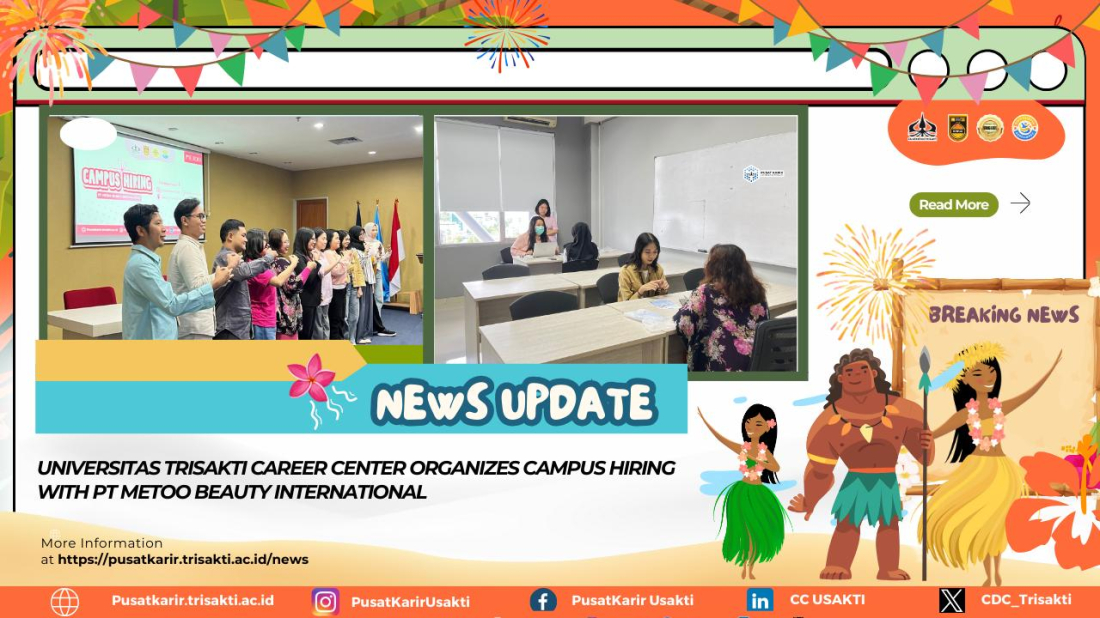 Kegiatan campus hiring ini bertujuan untuk menjaring talenta muda berbakat langsung dari lingkungan akademik, khususnya mahasiswa, fresh graduates, dan alumni Universitas Trisakti. Melalui program ini, PT Metoo Beauty International memperoleh kesempatan untuk merekrut kandidat berkualitas dengan ket...