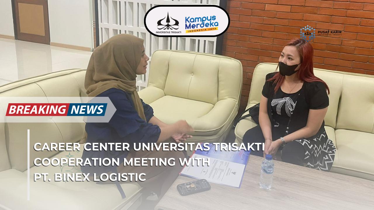Tujuan dari diskusi kerja sama ini PT. BINEX LOGISTIC ingin mengadakan kerja sama terkait penayangan informasi lowongan kerja yang tersedia menggunakan layanan Pusat Karier Universitas Trisakti antara lain website (pusatkarir.trisakti.ac.id) dan sosial media lainnya.